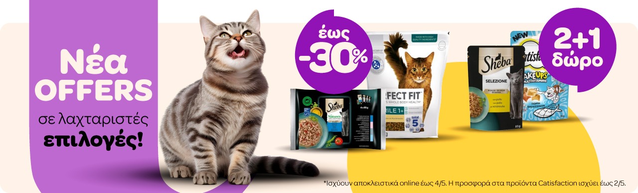 Ξηρά Τροφή Γάτας Ξηρά Τροφή Σκύλου Υγρές Τροφές Γάτας Κρεβατάκια Γάτας Προσφορές Άμμοι & Πέλλετ Γάτας Κλινικές Τροφές Σκύλου Αντιπαρασιτικά Γάτας Αντιπαρασιτικά Σκύλου Αδιάβροχα Σκύλου