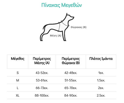 Για να δείτε τα διαθέσιμα μεγέθη και να επιλέξετε το σωστό μέγεθος για το σκυλάκι σας κάντε κλικ στο "Μεγεθολόγιο"