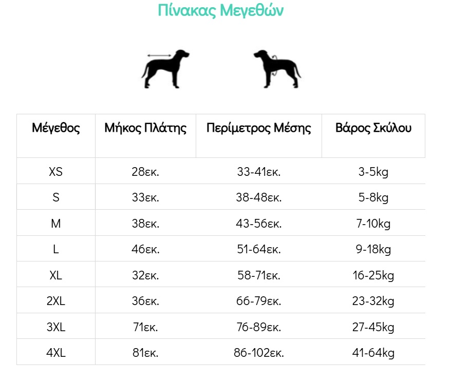 Σε περίπτωση που οι μετρήσεις σας βρίσκονται ανάμεσα σε 2 μεγέθη, επιλέγετε πάντα το μεγαλύτερο μέγεθος.