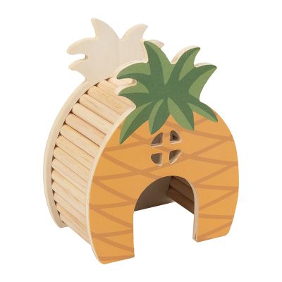 Ξύλινο σπιτάκι, κατάλληλο για μικρά τρωκτικά. Προσφέρει έναν ήσυχο και ασφαλή χώρο ανάπαυσης μέσα στο κλουβί.