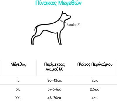 Για να επιλέξετε το σωστό μέγεθος, μετρήστε την Περίμετρο Λαιμού του σκύλου σας, όπως φαίνεται στη φωτογραφία (Α)