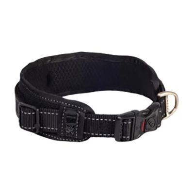 Ανθεκτικό και εργονομικό περιλαίμιο με ενίσχυση που κατανέμει ομοιόμορφα την πίεση στον λαιμό του σκύλου για μεγαλύτερη ασφάλεια. Η μαλακή επένδυση προσφέρει άνεση, ενώ το κούμπωμα εξασφαλίζει σταθερό και ασφαλές κλείδωμα. Η ύφανση περιλαμβάνει ανακλαστικό νήμα για αυξημένη ορατότητα τη νύχτα.