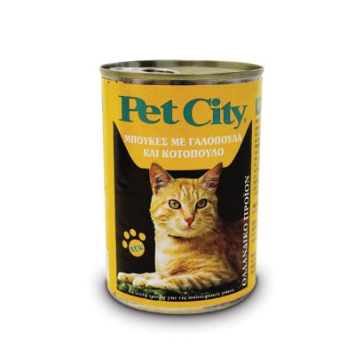 Pet City Γάτας Μπουκιές με Γαλοπούλα & Κοτόπουλο 410gr