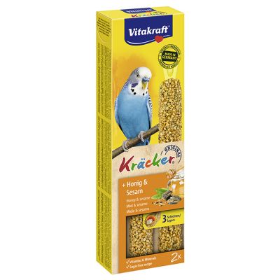 Τραγανά κράκερ με μέλι και σουσάμι, για παπαγαλάκια. Ψήνονται σε φυσικό ξύλο για μεγάλη διάρκεια και απασχόληση. Περιέχουν μέλι και σουσάμι, που προσφέρουν ενέργεια και ποικιλία στη διατροφή, και βοηθούν στη φυσική φθορά του ράμφους. Η συσκευασία περιέχει 2 κράκερ.