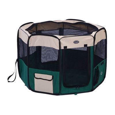 Ευρύχωρο και πρακτικό πάρκο περιορισμού για σκύλους, ιδανικό για χρήση στο σπίτι, στο ταξίδι ή σε εξωτερικούς χώρους. Διαθέτει μεγάλα διχτυωτά ανοίγματα για αερισμό και ορατότητα, καθώς και μπροστινή είσοδο με φερμουάρ για εύκολη πρόσβαση. Οι πλαϊνές και πίσω κουρτίνες μπορούν να ρυθμιστούν ανάλογα με τις ανάγκες, ενώ η κατασκευή του είναι ελαφριά και αναδιπλούμενη για εύκολη μεταφορά. Μπορεί να χρησιμοποιηθεί ως σκηνή ή προσωρινός χώρος ανάπαυσης και παιχνιδιού.